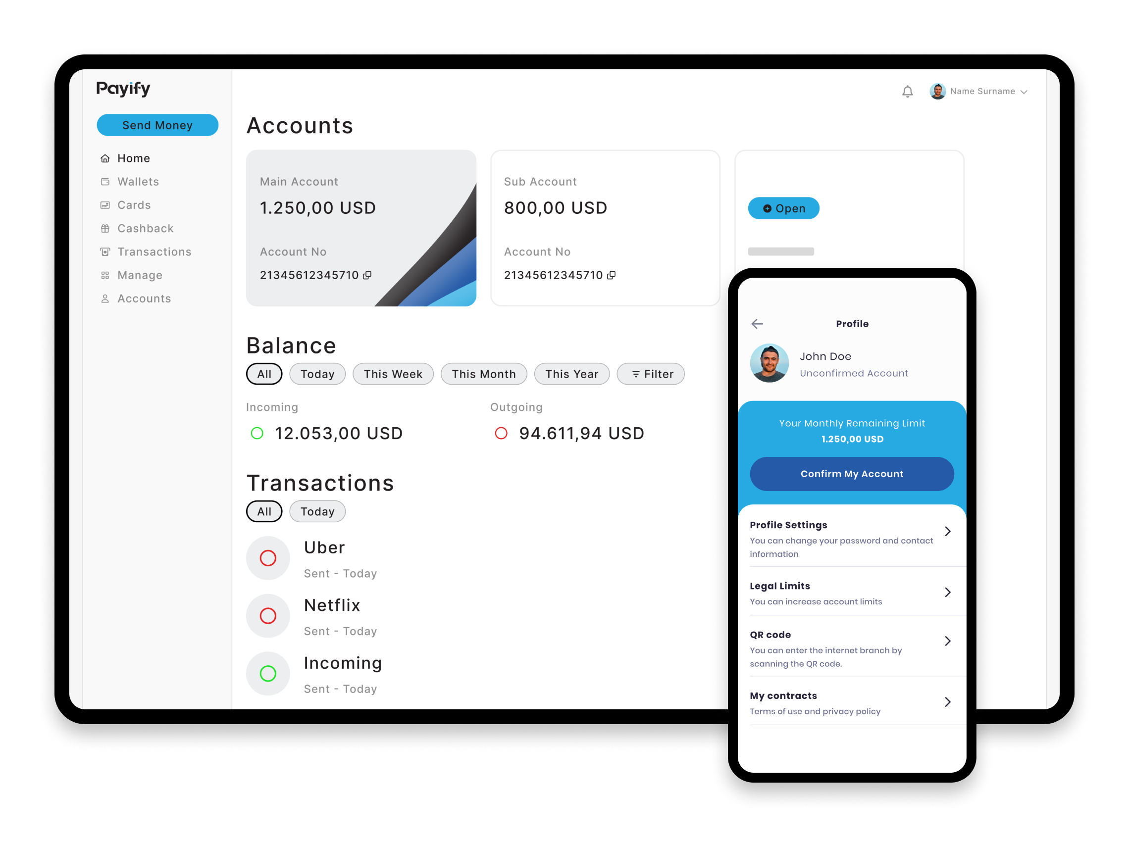Manage innovative payment services and electronic money solutions with Payify, all in one place.